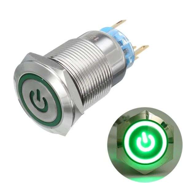 Built from stainless steel, the Green LED 12mm Waterproof Push Button Switch ensures long service life and reliable performance. It operates in a self-locking (latching) mode, meaning it stays in the ON or OFF position until pressed again. The integrated LED ring, powered at 3–6V DC, provides clear visibility and adds a premium appearance to any panel.